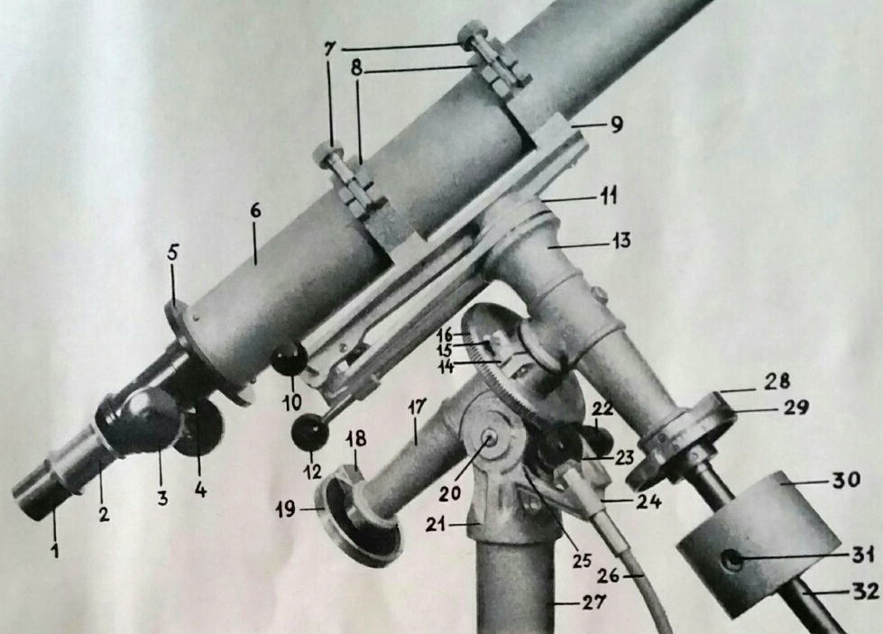 Teleskop und Montierung vor der Restaurierung. |