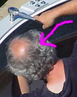 empfindliche Kopfhaut in der Mitte der beginnenden Glatze gut geschützt
