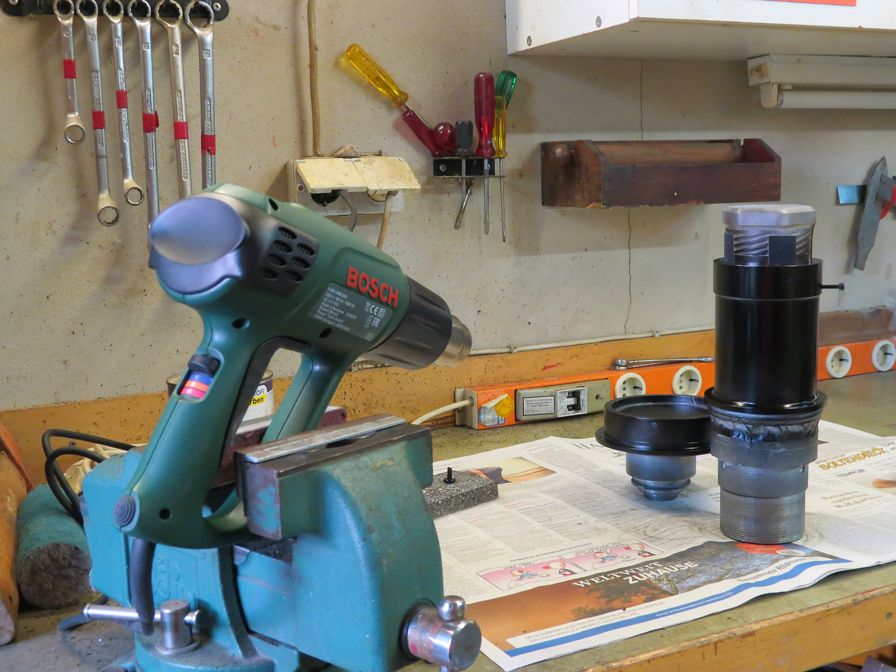 Einzelteile mit einer Heißluftpistole "Einbrenn lackiert" (siehe