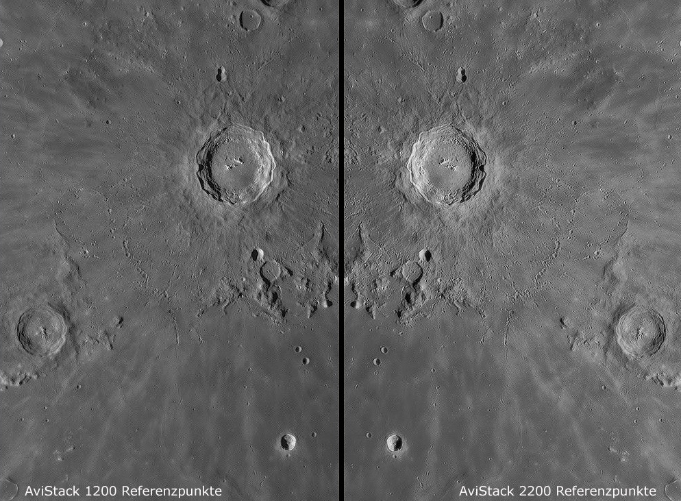 Ergebnissen von RegiStax und AviStack (siehe Beispielbilder weiter unten).