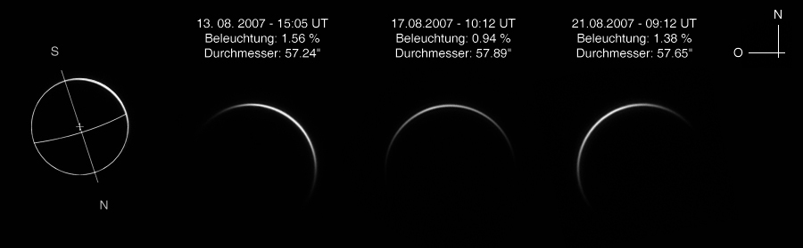 Venus war zu dieser Zeit nur noch zu 1,15% beleuchtet; Untergang war um 17:03