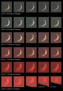 Das Bild links zeigt Einzelbilder der Venus kurz vor dem Untergang